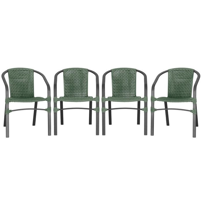 04 Cadeiras Floripa Alumínio Pintura Preta Corda Nautica Trama Original Verde