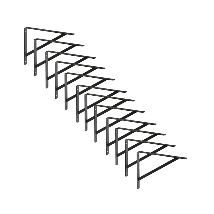 12x Suporte Mão Francesa Forte P/ Prateleira 50cm - Preta Preta
