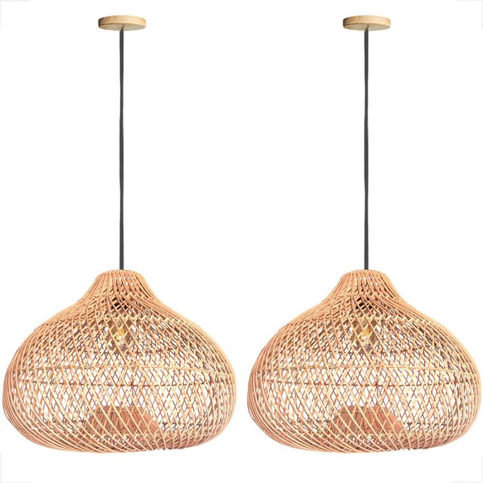 2 Pendente Fibra Natural Rattan Boho Gota Bali Nat76