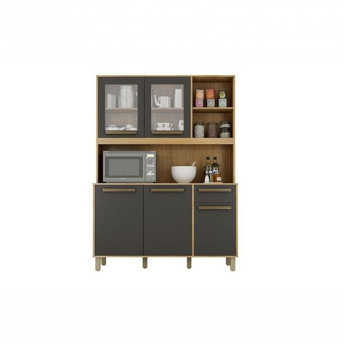Armario De Cozinha 5 Pts 3 Nichos 1 Prateleira Cinamomo/Grafite Cinamomo/Grafite