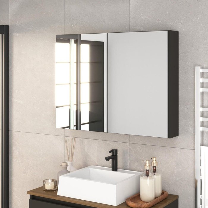 Armário Espelheira para Banheiro 80cm com 2 Portas de Espelho Aurora Grafite