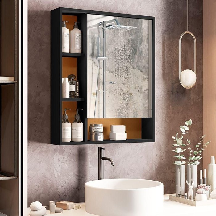 Armário Suspenso Espelheira 1 Porta com Espelho Olimpia Preto/nature