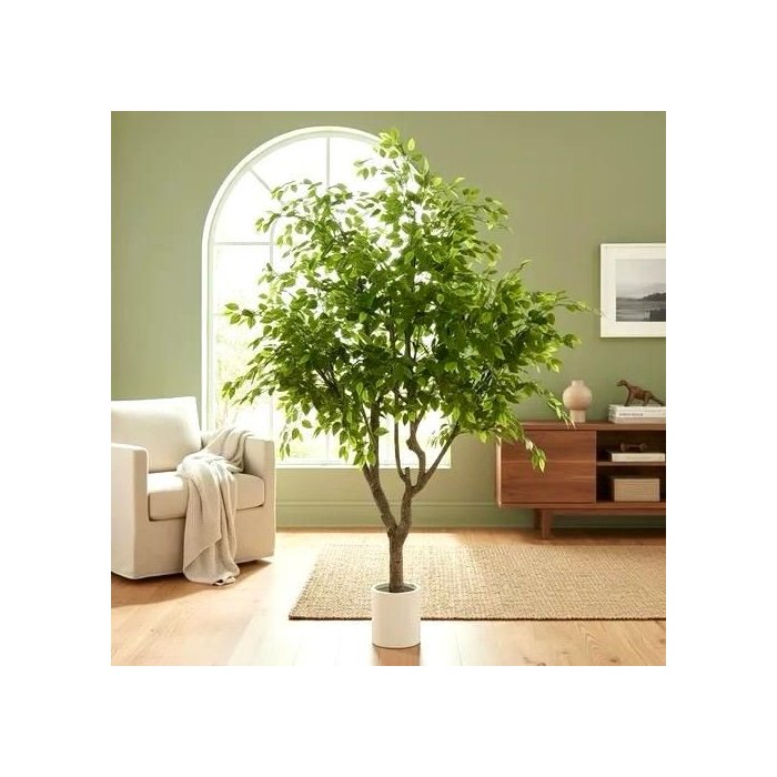 A Árvore Ficus artificial, possui folhas com material em silicone e plástico de excelente qualidade deixando-as com aparência muito natural, as hastes possuem arame as tornando flexíveis para ajustar as folhas da forma que preferir.