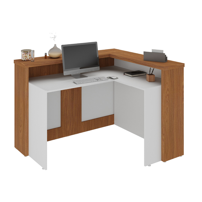 Balcão Atendimento com Montagem Dupla Bulgária Freijó Branco Freijó/Branco