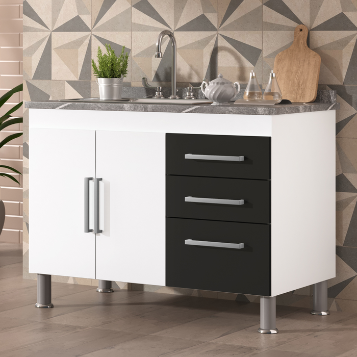 Balcão de Pia Gêmeos 1,00 - Branco/preto Branco/Preto