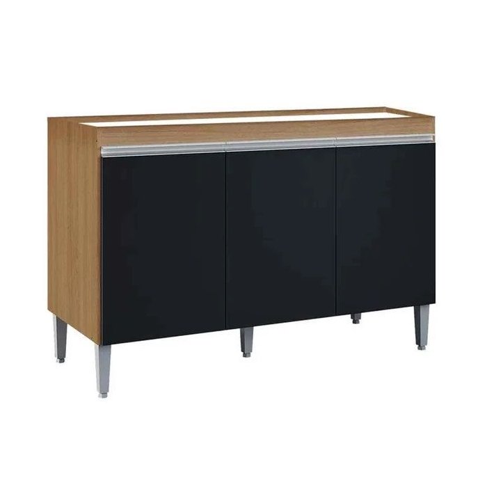Balcão Gabinete de Pia Manu 120cm S/ Tampo Cor Amêndoa/preto - Ajl Móveis