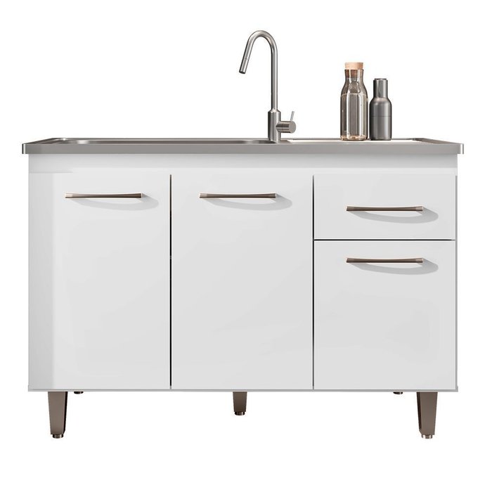 Balcão Gabinete para Pia sem Tampo 118cm França Ll Branco - Saga Decor