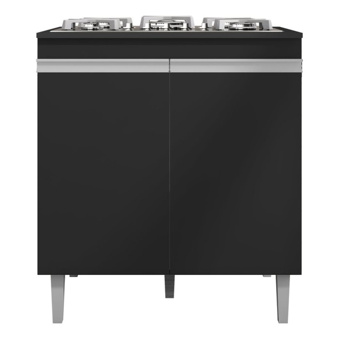Balcão Multiuso Cooktop Andreia P/ 4 ou 5 Bocas - Ajl Móveis Preto
