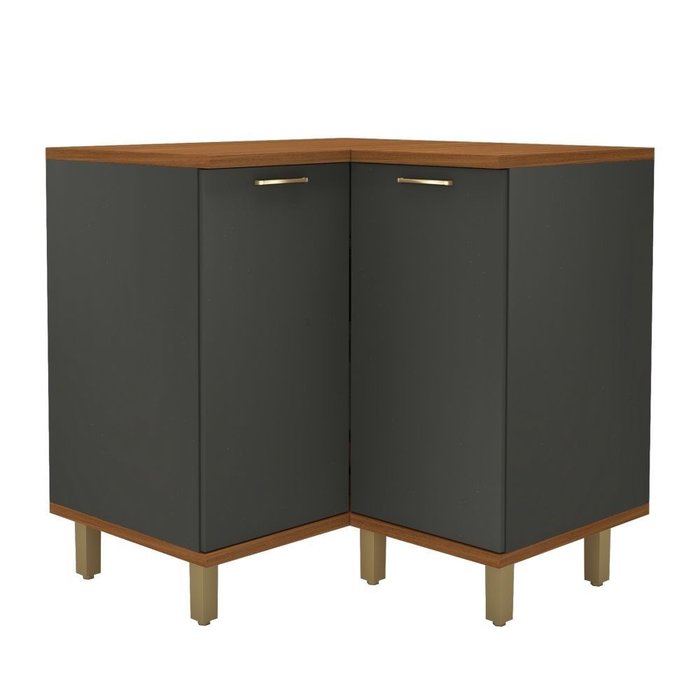 Balcão Munique - 2 Portas Canto Tampo Mdp 15/25mm Prateleira Interna Uv - Indekes Chumbo