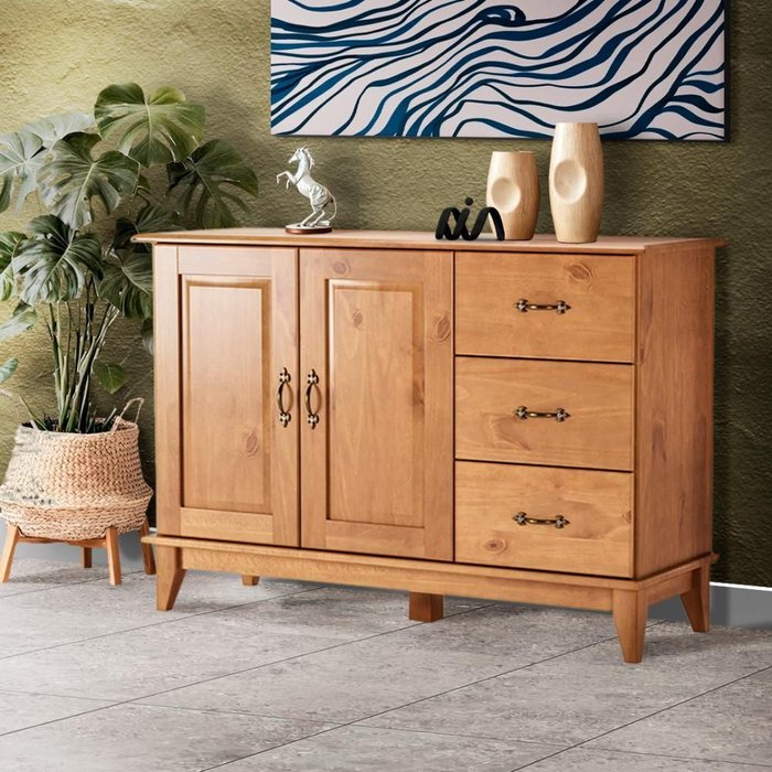 Balcão Rústico Madeira Maciça 2 Portas 3 Gavetas Bella Jm Móveis - Carvalho Bege