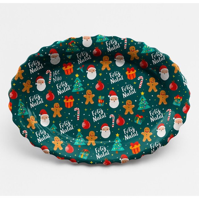 Produto: Bandeja natalina decoradaFormato: Oval, funda