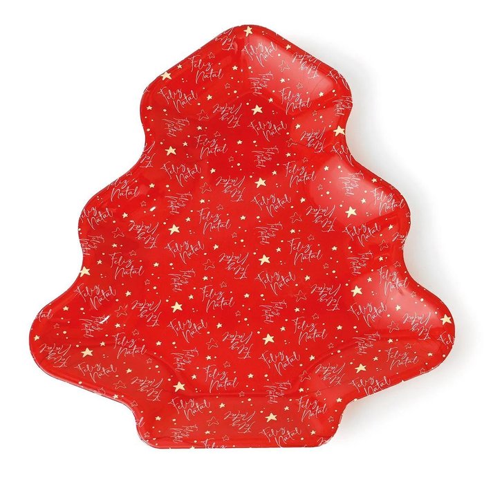 Bandeja Prato Arvore de Natal - Natal 27x24,5cm:vermelho