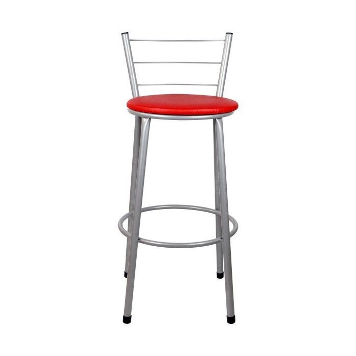 Banqueta Alta para Cozinha Prata Assento Vermelho