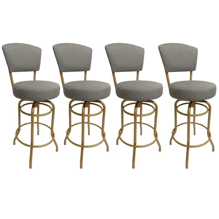 Banqueta Bar Altura 65cm Giratória com Encosto cor Dourado fosco Assento cor linho Cinza grosso Kit