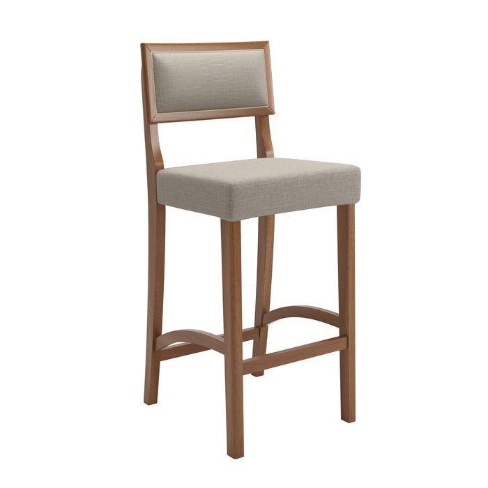Banqueta Comfot Alta Bar Luxo Pés em Madeira Maciça Área Gourmet Balcão Sacada Hall Cor Bege Imbuia