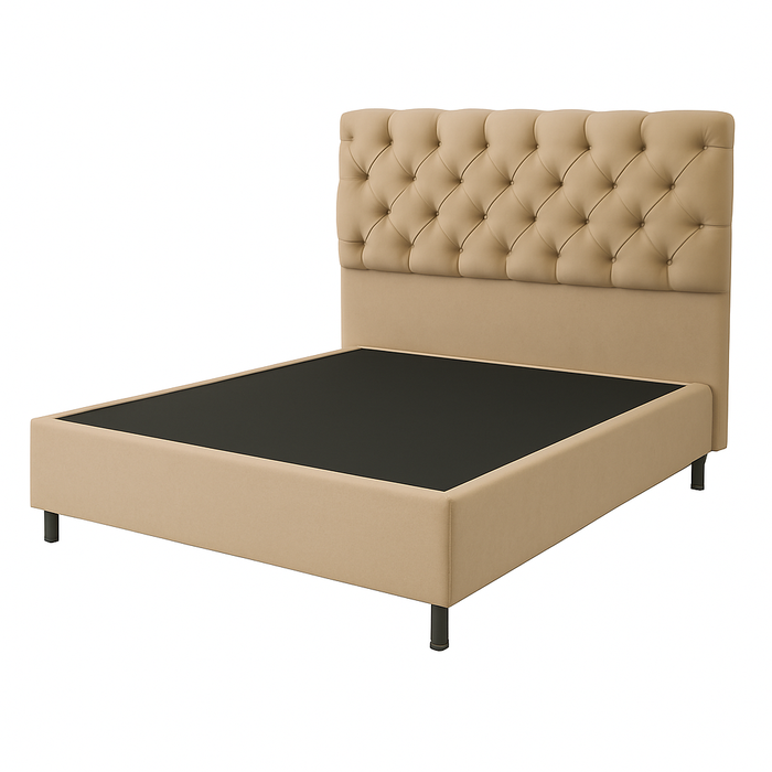 Base Cama Box Casal com Cabeceira Bege 138x188cm
