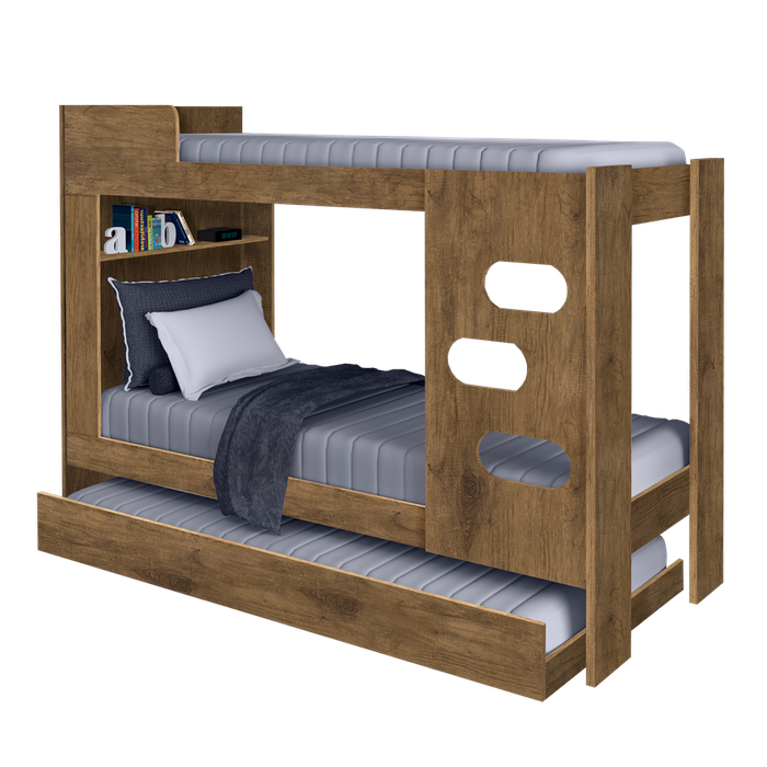 Beliche Floripa com Cama Auxiliar 100% MDF J&A MóveisEssa linda Beliche Floripa vai agregar mais charme e praticidade ao seu ambiente. Produzida 100% em MDF e estrado de eucalipto e pinus . proporcionando maior resistência e durabilidade ao produto. Para maior segurança ela contém proteção lateral na cama superior. Beliche Floripa conta com um design requintado agregando mais beleza ao seu quarto.Características do produto:- Produzida 100%MDF;- Acompanha cama auxiliar;- Estrado de eucalipto e pinus- Escada regulável;- 1 Prateleira;- Ideal para colchão de 0,88 x 1,88;- NÃO acompanha colchão.Dimensões do produto:- Altura 150 cm;- Largura 97 cm;- Profundidade 193,6 cm.A Montagem do produto é de responsabilidade do comprador, apesar de ser fácil e acompanhar manual de montagem recomendamos que a mesma seja realizada por um profissional ou empresa especializada.A Imagem é meramente ilustrativa, podendo variar a tonalidade de acordo com a tela de visualização.