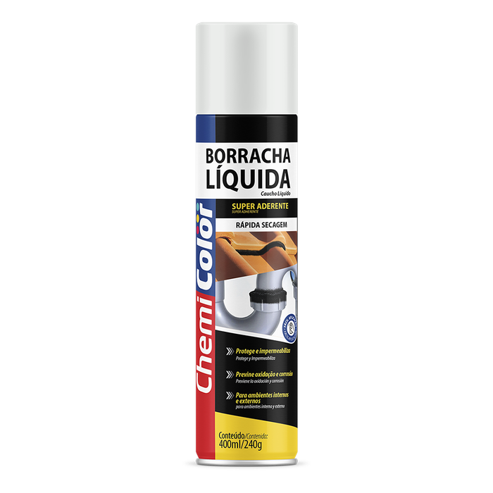 Indicada para selar, proteger e impermeabilizar rachaduras e orifícios, a Borracha Líquida Chemicolor é ideal para resolver pequenos vazamentos. Possui excelente aderência a diversas superfícies além de ser resistente a diferentes condições climáticas. Tudo isso com uma aplicação fácil e rápida.