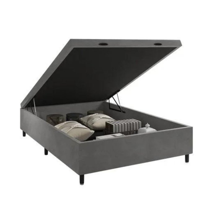 Box Baú Casal 1,38x1,88 Conceito Cinza - Linho Cinza
