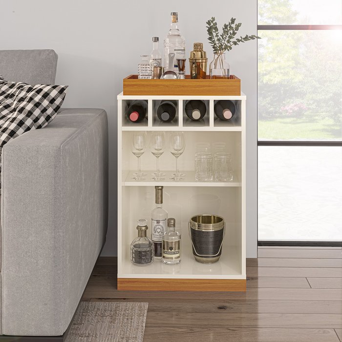 Buffet Aparador Barzinho Astúrias Retrô com 4 Adegas e Bandeja - Vianossa:off White/cedro