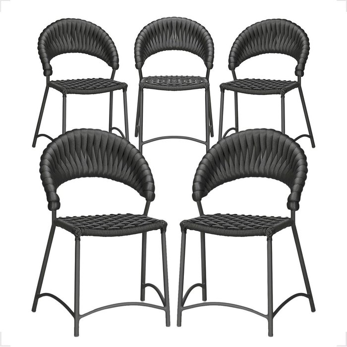 Cadeira de Jantar Milão Aluminio e Croche Náutico 5 Unidades - Preta