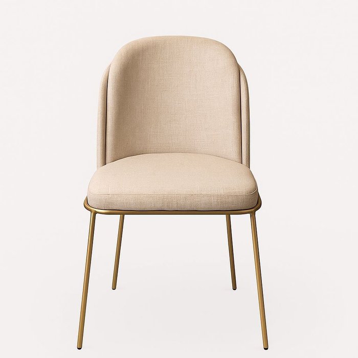 Cadeira Estofada com Encosto Curvo e Base em Aço Carbono – Luna Exclusiva Veludo Creme Dourado Automotivo