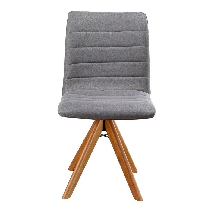 Cadeira Giratória com Assento Estofado e Base em Madeira Maciça – Chanel Exclusiva Linho Granito