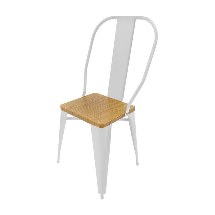 Cadeira Industrial em Aço Iron Tolix Branca Assento Sublimado Branco e Assento Natural