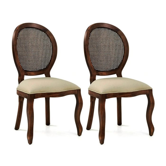 Cadeira Luis XV Medalhão em Madeira Maciça Estofada Canela Tecido Linho Rústico 407 Kit 2 Cadeiras Canela
