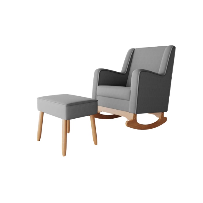 Cadeira Poltrona de Amamentação e Balanço C/ Puff Linho Grafite - Lahome Decor Aquila