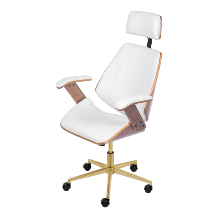 Cadeira Presidente Bergen Giratória - Branca | Dourado Matte