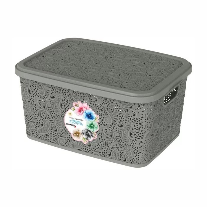 Caixa Organizadora Uninjet Tampa Floral 17l:Cinza