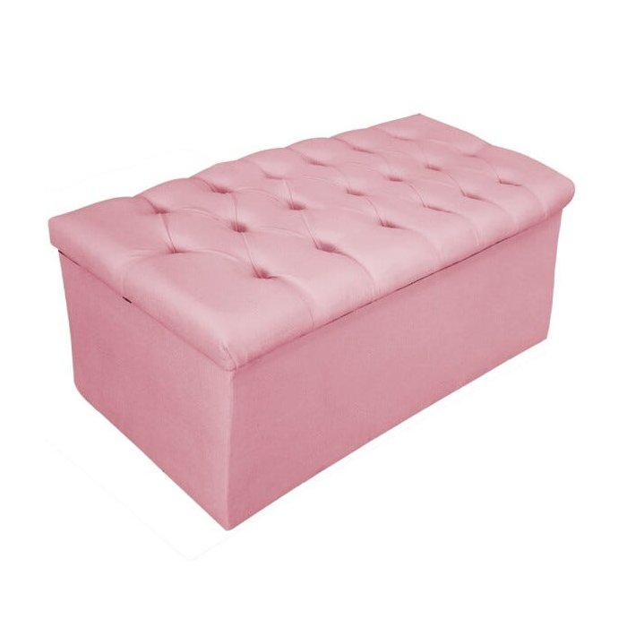 Calçadeira Baú Estofada Mel 90cm Solteiro com Capitonê Suede Rosa Bebê