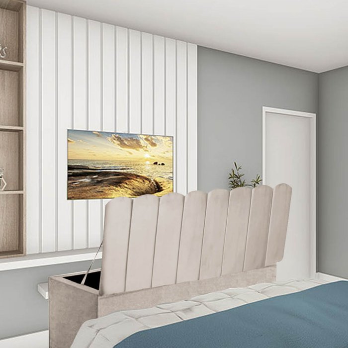 Calçadeira Baú Recamier King 190CM Alanis Suede Bege - D A DECOR