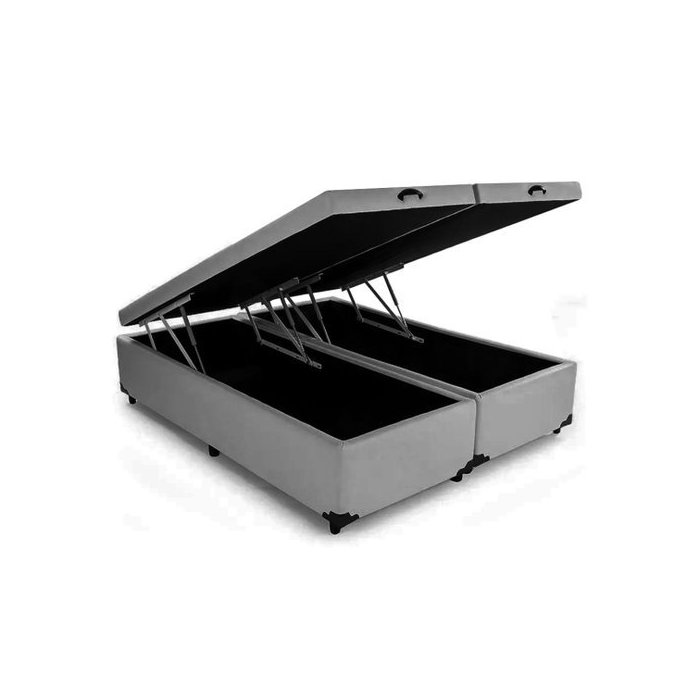 Cama Box Baú King Bipartido Sintético Cinza Com Pistão A Gás Cinza