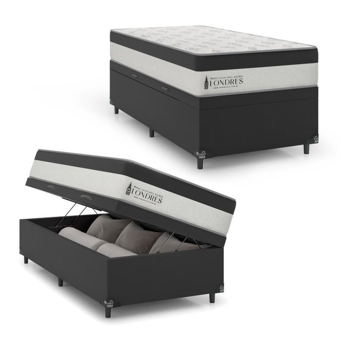 Cama Box Baú Solteiro + Colchão Londres Molas Ensacadas Pocket - e-Shop Casa