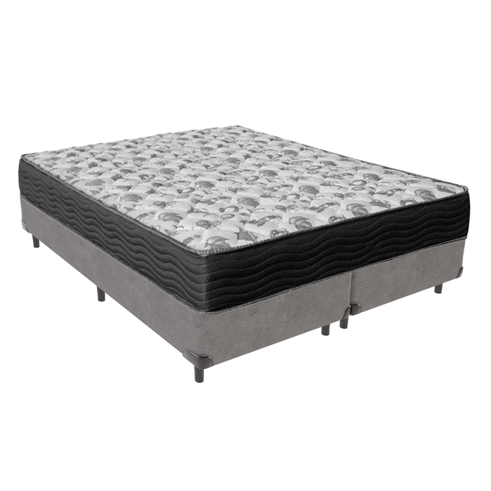 Cama Box Bipartido Queen Cinza e Colchão Misto Iso 100 Espuma Ortobom