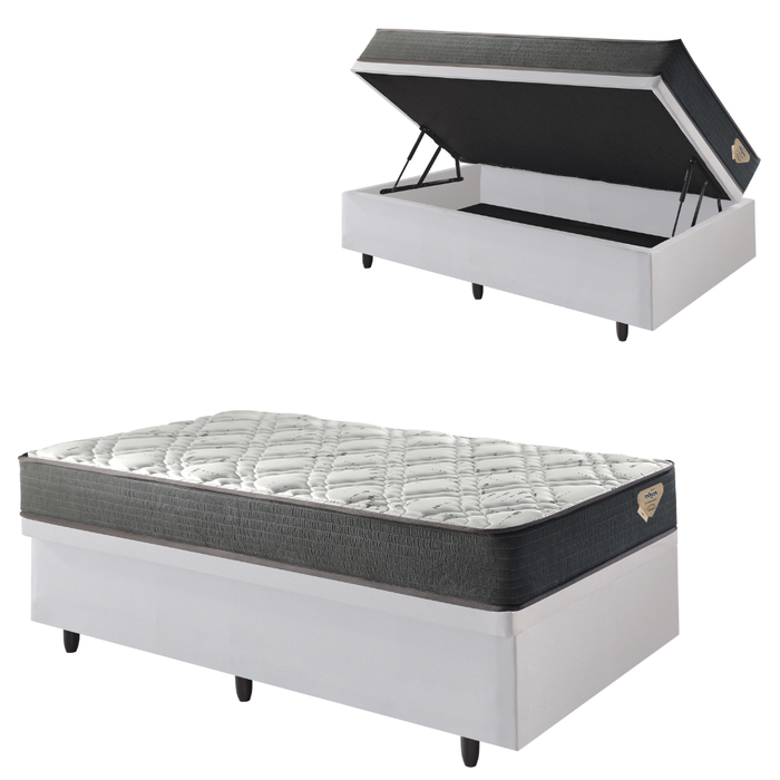 O conjunto une o conforto proporcionado pelo molejo ensacado com tecnologia PWS e toda a praticidade de ter uma cama baú que pode ser utilizada para guardar vários itens de sua casa, assim como designe clean para deixar o quarto moderno e sofisticado.