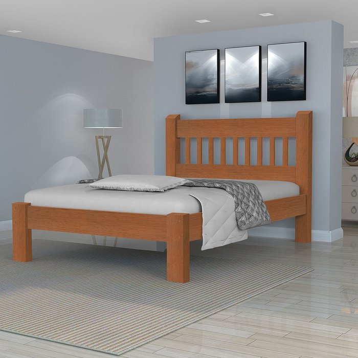 Cama Casal Queen Size Madeira Maciça Angelim Pedra/tauari Pérola Castanho