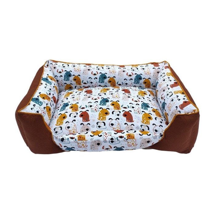 Tamanho P: 54cm (Comp) x 46cm (Larg) x 19cm (Alt). Almofada interna: 47x41cm. Ideal para cães pequenos como Chihuahua, Galgo Italiano, Pinscher, Pug, etc.