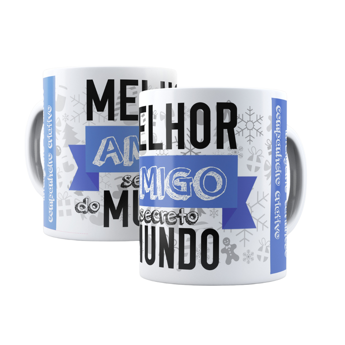 Caneca personalizada de porcelana de alto brilho, com interior e alça Branca Coleção Amizades.
