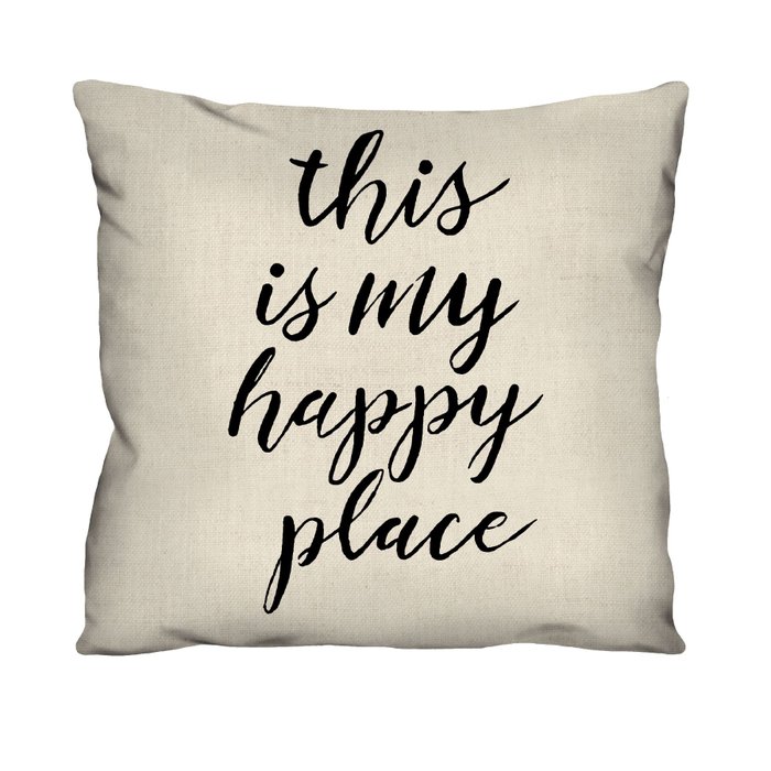 Capa de Almofada Decorativa Frase "happy Place" 100% Algodão para Sofá - 45x45cm