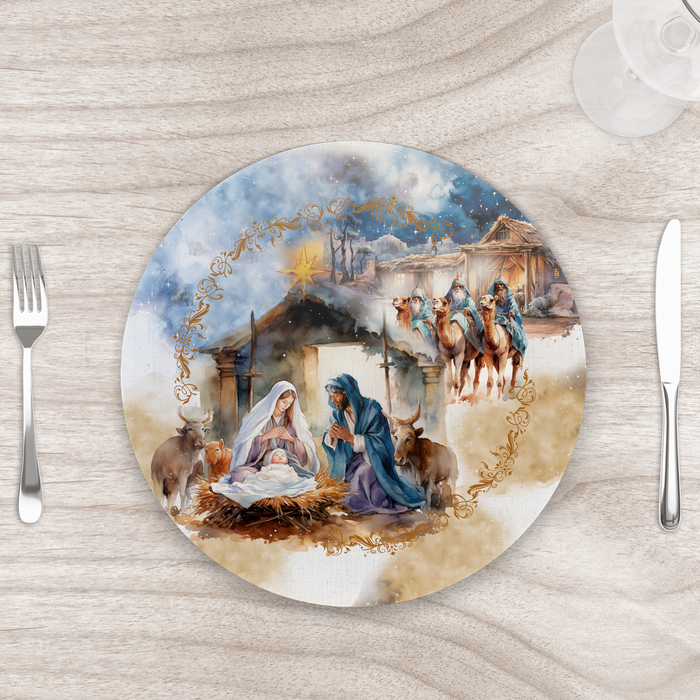 Capa para Sousplat 35cm Natal Presépio - com Base - Kit com 2