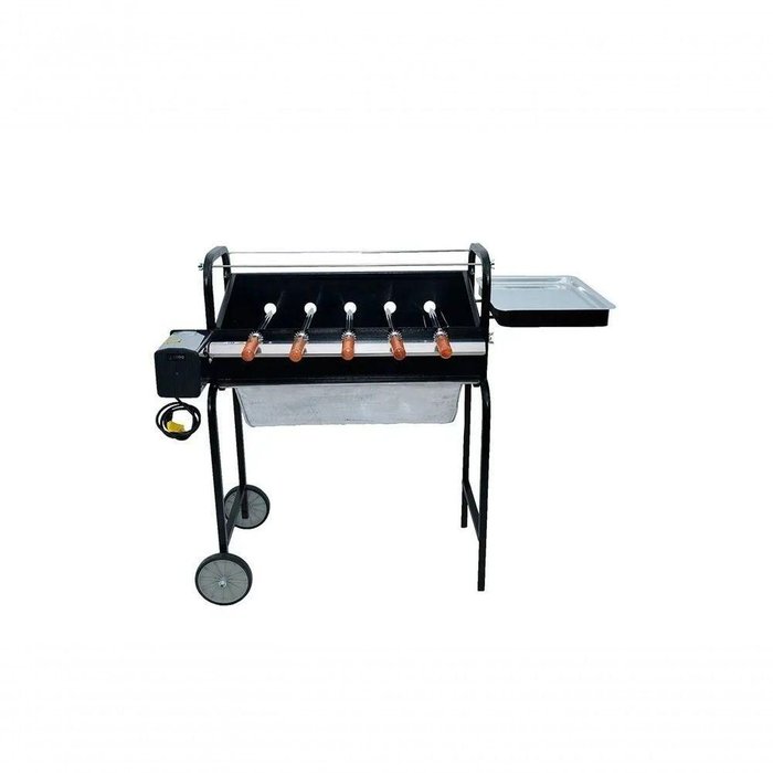 Descrição do ProdutoChurrasqueira Lobo Califórnia Portátil com Braseiro + 5 Espetos Marca: Lobo Churrasqueiras Acompanha1 Espeto Tridente Inox; 4 Espetos de Lâmina Inox; 1 Mesa de serviço com bandeja em alumínio; 1 Pé com duas rodas e um pé de apoio; 1 Braseiro em aço inox ou alumínio. (frente em aço inox); Motor com chave seletora 127 e 220 v (bivolt). MedidasMedidas Montada: Altura: 93 cm; Largura: 47 cm; Comprimento: 112 cm; Peso: 22 kg. Medidas Internas: Largura: 69 cm; Profundidade: 30 cm. GarantiaO MOTOR POSSUI 6 MESES DE GARANTIA.