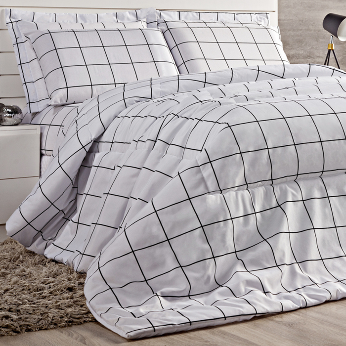 Embalagem contém:01 Edredom 2,60 x 2,40 m02 Porta Travesseiros 77 cm x 55 cm(medida útil 70 x 50 cm)Composição:PERCAL 180 FIOS