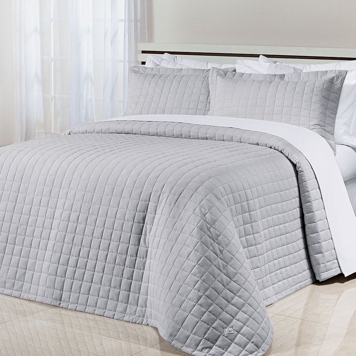 Cobre Leito Glass Queen 3Pçs 200 Fios 100% Algodão Prata