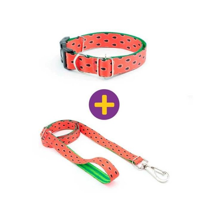 Coleira e Guia Smooty Pet Melancia M Kit Melancia