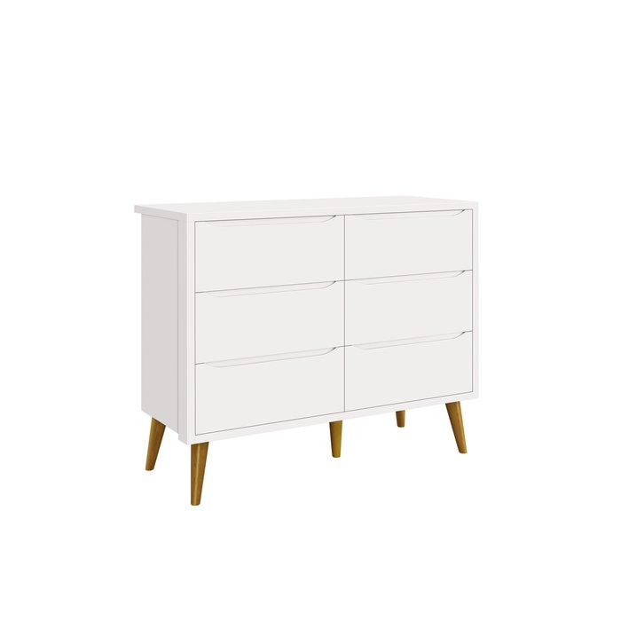 Comoda 6 Gaveta Theo Retrô Branco Fosco