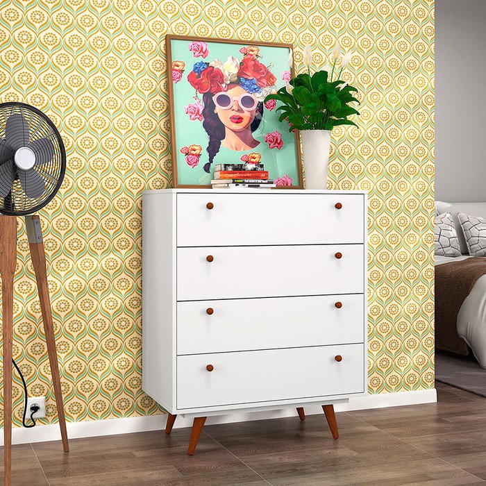 A Cômoda Retrô 35 possui um design do retrô ao contemporâneo deixando o ambiente sofisticado. Possui quatro gavetas amplas e deslizantes com reforço.