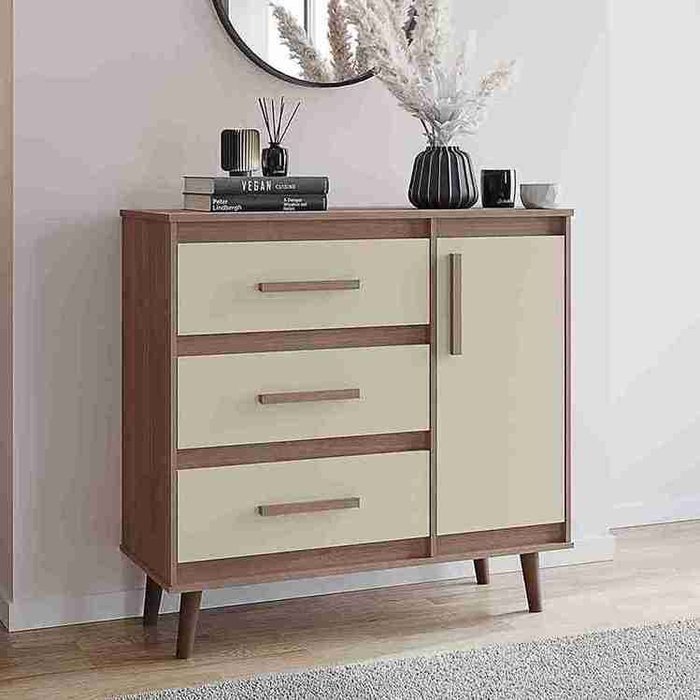 Cômoda Sapateira Mila em Mdp 3 Gavetas 1 Porta Retrô - Savana/off-white